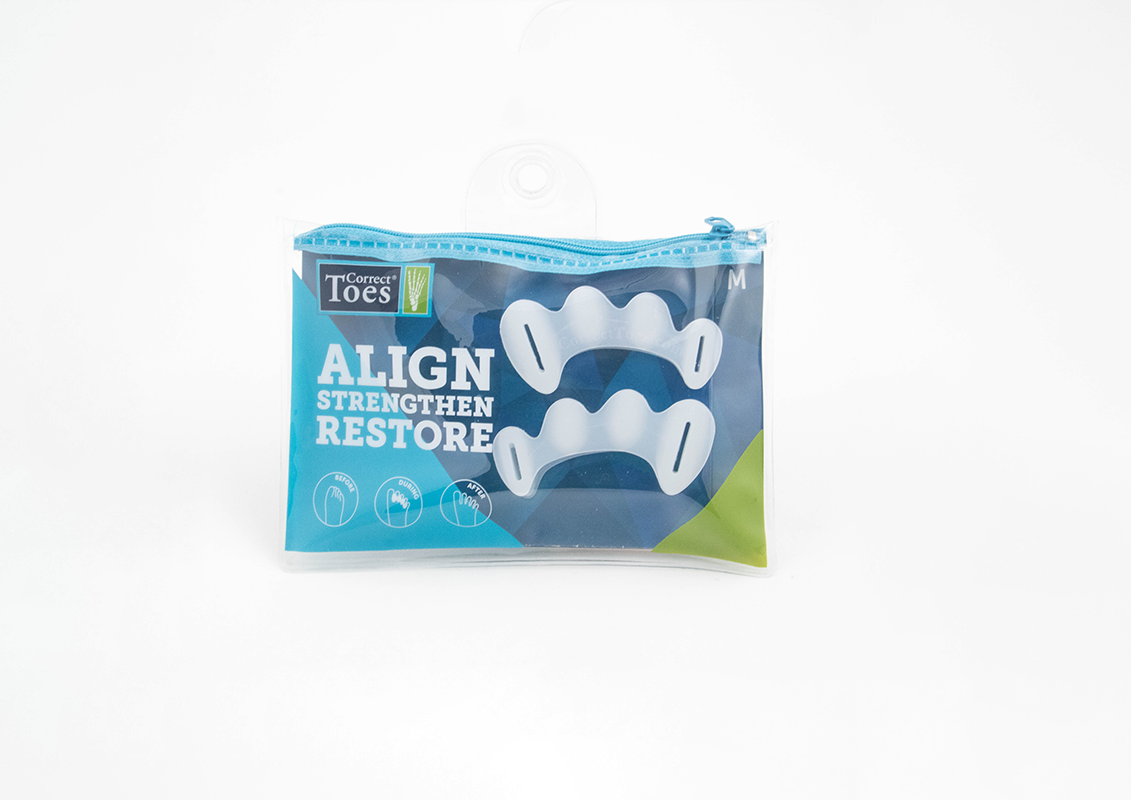 Designed by Dr. Ray McClanahan, DPM, Correct Toes® toe spacers are made from soft, flexible silicone and encourage toes back into their natural alignment. With progressive and cumulative use while active and weight bearing, feet and toes can strengthen in this healthy posture, helping to restore the foot’s original position and function.