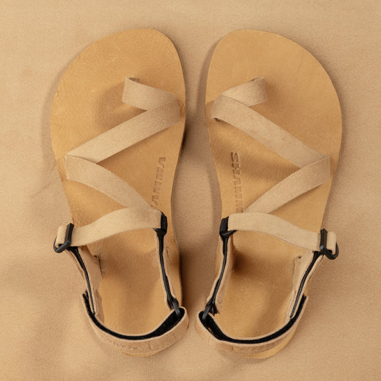 The Maximus sole uses an 8mm Vibram® Newflex sole coupled with a tan leather footbed for a 9mm total stack height. Vibram® Newflex is made from a blend of rubber and EVA to form a durable soling material with aggressive tread. At 3mm thicker than the Warrior sole, you will get a much more rugged sandal that is capable of diffusing the feeling of rocks, sticks, and the like from underfoot. The Maximus sole is suitable for a host of situations from the trail to the gym.